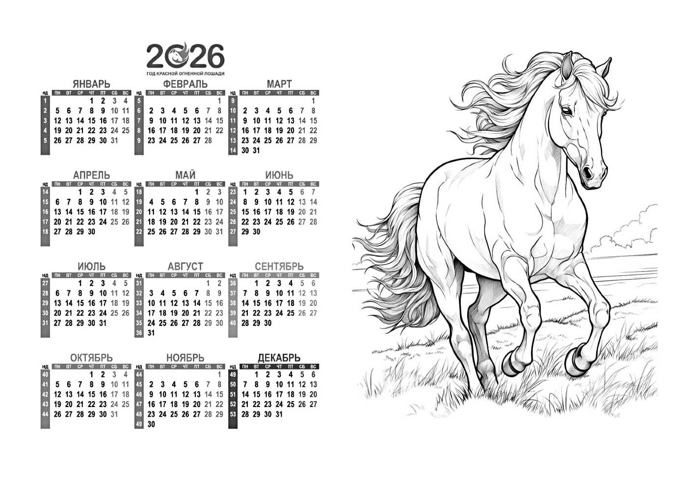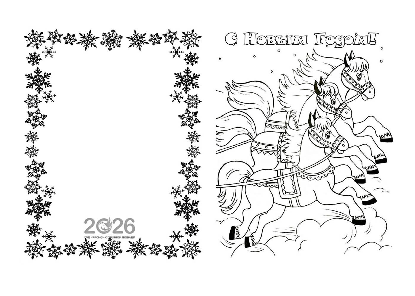 Новогодние раскраски с надписями «С Новым годом! 2026», открытки, календарь с лошадью и другие картинки для раскрашивания подарят вам и вашим детям Новогоднее настроение! Раскраски с Лошадьми можно раскрасить и подарить на Новый год своим родным и близким.